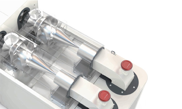 氣流,通過一種空氣動力學導流葉片腔變成高速旋轉的螺旋氣流,達到每分鐘4000轉,從而產生超過100倍于重力的離心力。99.7%的粉塵顆粒在此離