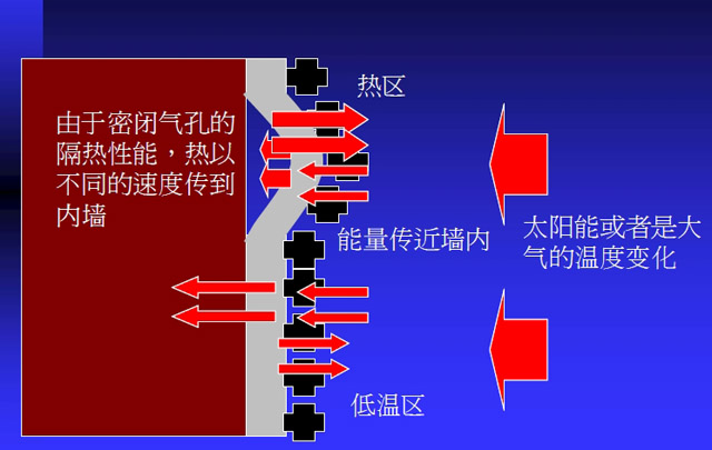 從外墻表面溫度信息能夠獲取墻身有沒有缺陷,當陽光照射到建筑物表面時能量傳進墻內,由于密閉氣孔的隔熱性能,熱以不同的速度傳到內墻,在NEC紅外熱像儀會產生熱區域和冷區域從此判斷是否有缺陷。
